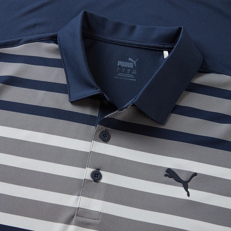 | Puma Breakaway Golf Polo Shirt DryCELL Technology Provides A Fresh Feel The Puma Breakaway Polo Shirt is a stylish and popular garment that is worn on tour by many players including Rickie Fowler. Made from 100% polyester, the Breakaway Polo Shirt is designed to offer maximum ventilation and comfort on those warmer days. With DryCELL technology that provides a moisture wicking finish, this polo is an all-round technical shirt that will keep you dry and smelling fresh. Finished with a self collar, stripe detail and a contrast Puma brand logo on the left chest for added style. Puma golf polo shirts offer the perfect combination of garment technology with a modern sporty design. |